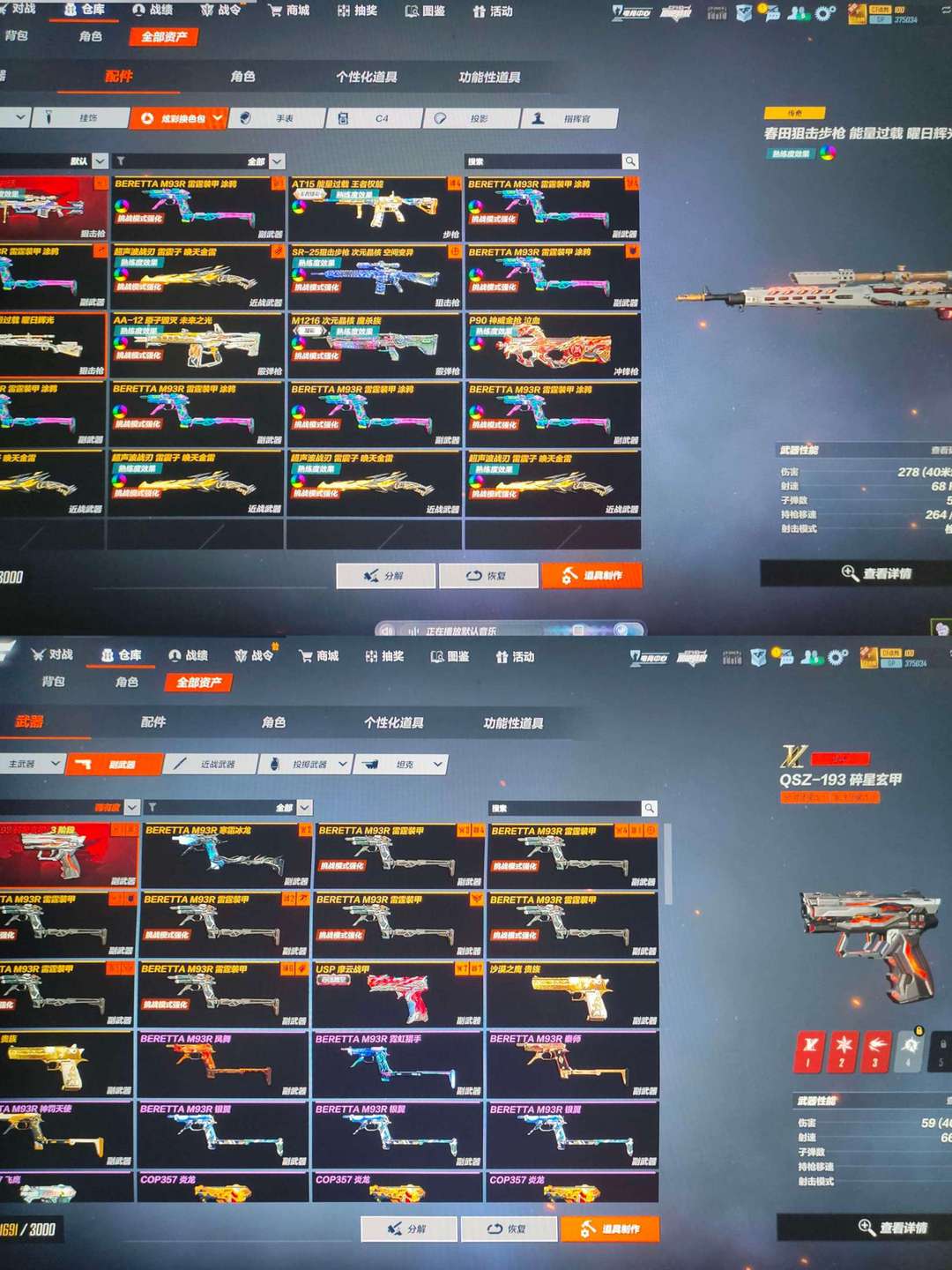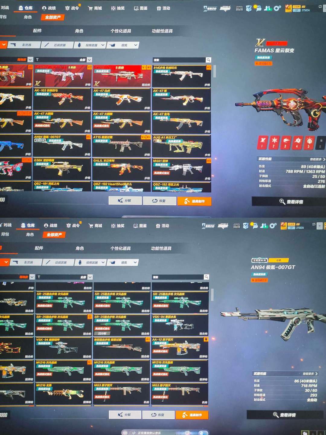 挑战全满➕法玛斯灵狐M200神话➕An94 极氪➕AT15过载炫彩➕阿飘女巫皮全追击皮肤