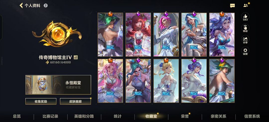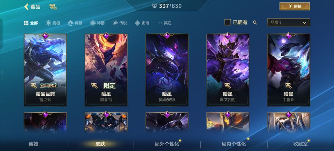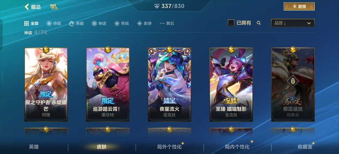 装备描述:阿狸永绽盛芒墨菲特神话金克丝至臻兰亭序亚索皇子蛮王大部分年限大部分水晶玫瑰系列皮肤