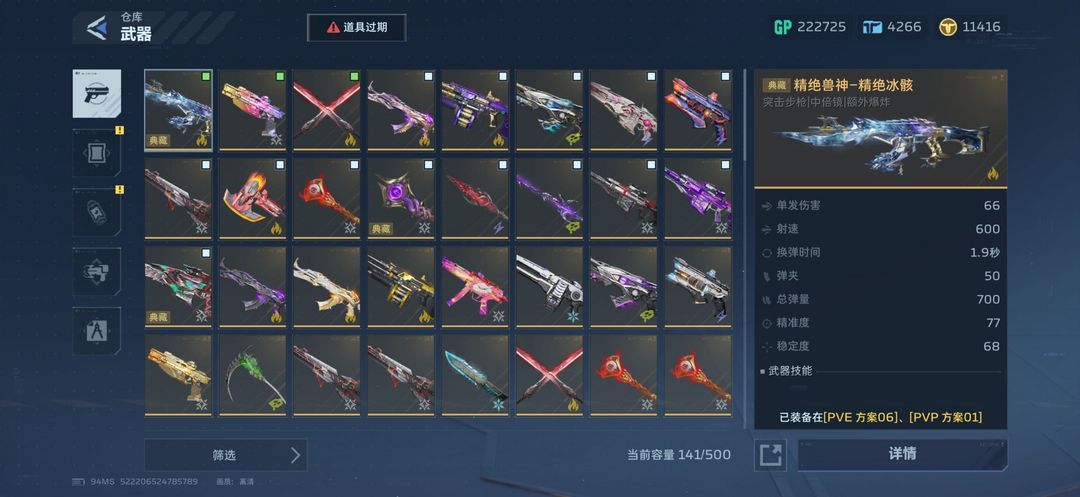 顶级精氪号!双典藏、精绝冰骸 幽航猎影 塔防全四级、血怨金刀都有!所有武器毕业