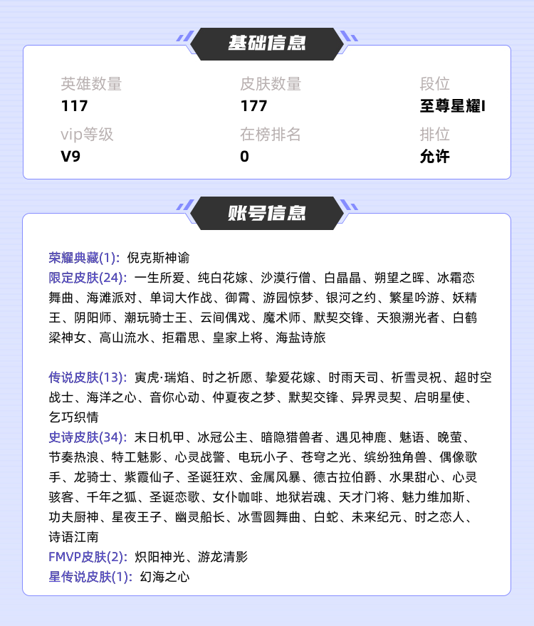 装备描述:六年老账号希望自己的皮肤体验卡尽量不要点了,租号珍惜一点,倪克斯神谕海洋之心,各种限定皮肤比较多