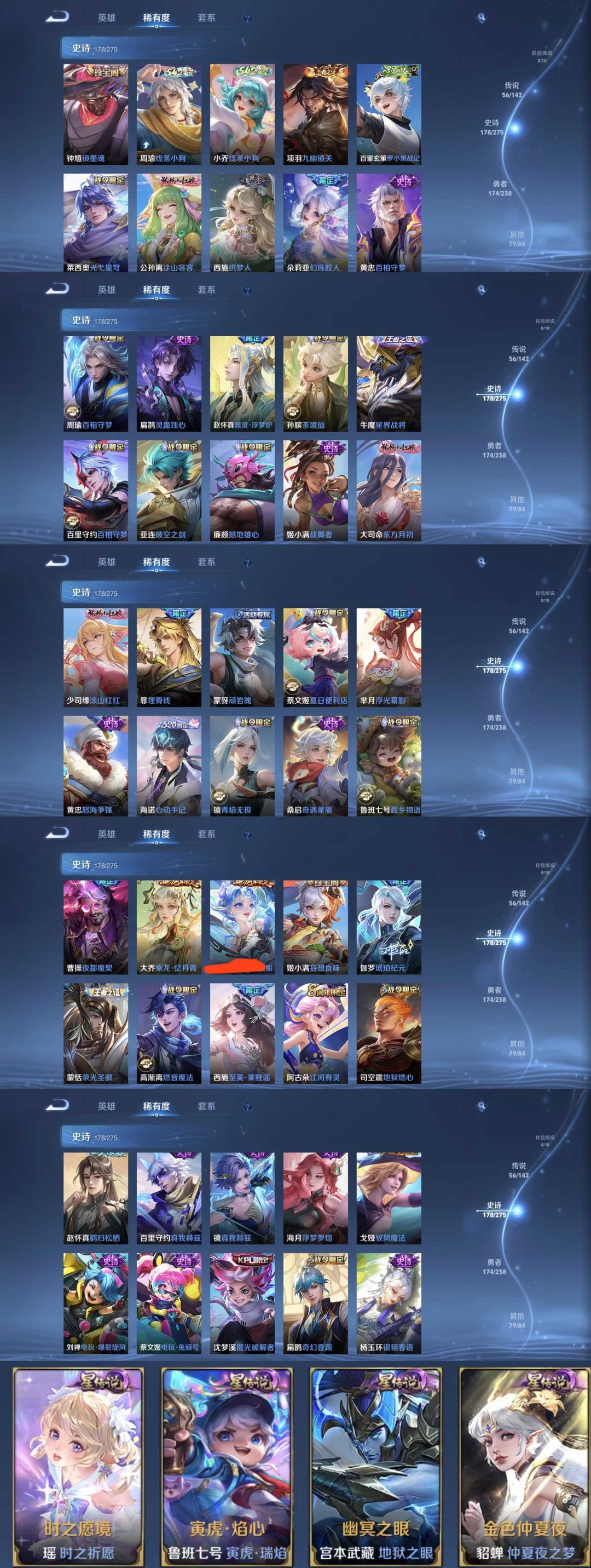 限制: 租号2次及以上 |装备描述:有时候会登录不上需要再等10分钟,时间到了还登录白玩或者顶号全部改密拉黑处理永不解除,顶号机器会秒禁玩改密,顶号不仅拉黑还没得玩,赚三两块不容易,请理解谢谢。 ❤❤❤❤❤❤❤❤❤❤❤❤❤❤❤❤❤❤ 请勿开挂,挂机,送头,骂人,撤单后游戏等如有违规永久拉黑永不解除。 重置二级密码不要费劲了,号主每天都会上号查看,多行不义必自毙,人在做天在看,多做好事多自律,少做缺德事。 该号英雄128个皮肤495个,典藏4个,无双4个,星传说4个,传说56个,史诗178个,祝你游戏愉快~