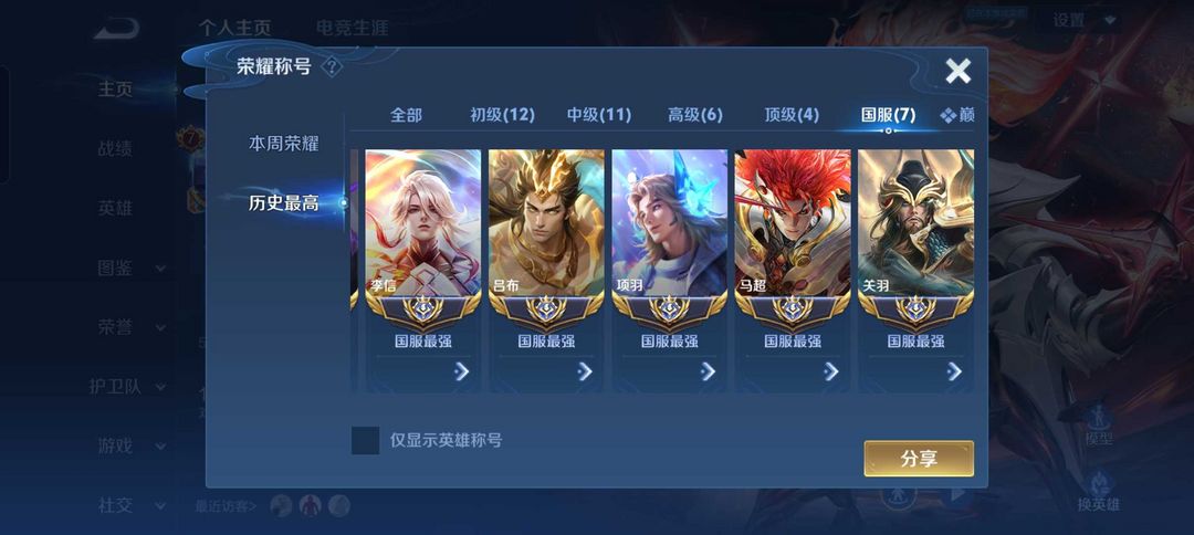 四月在榜小国服吕布项羽✨82段国服对抗路⭐1w5国服马超李信关羽✨可排位禁巅峰