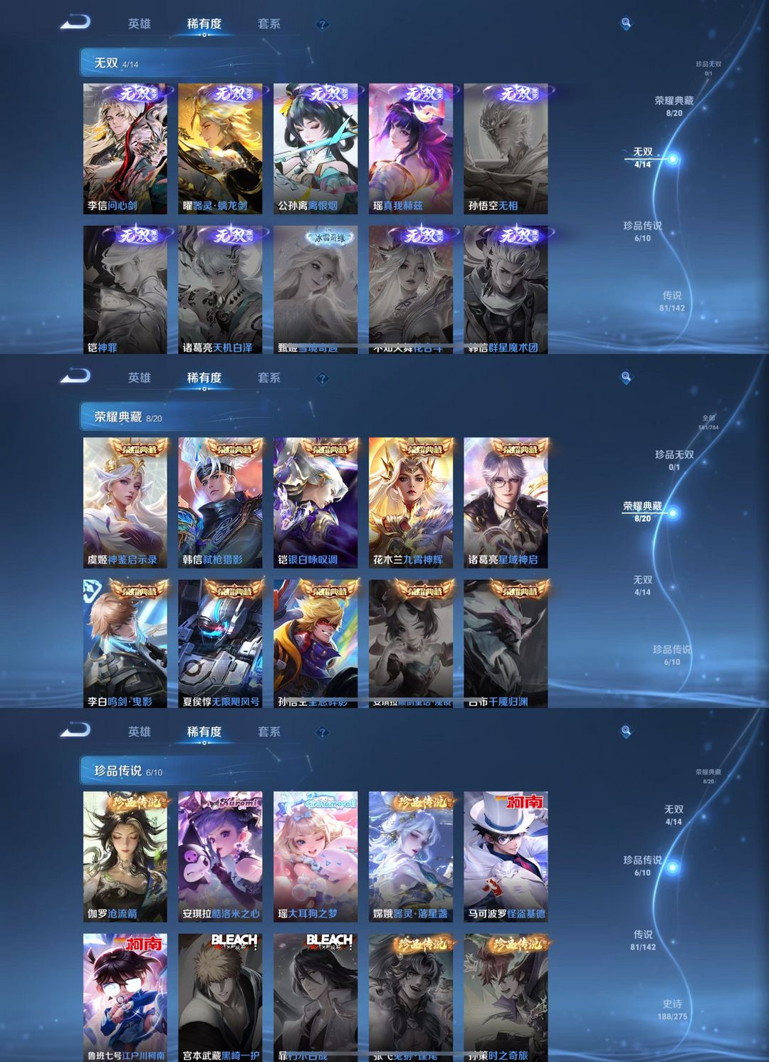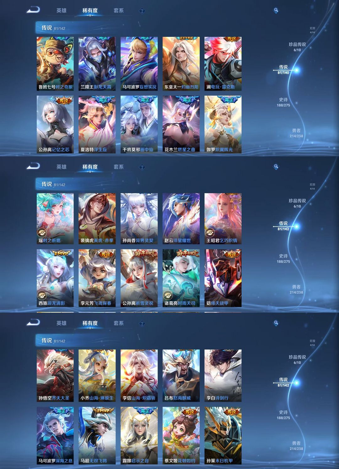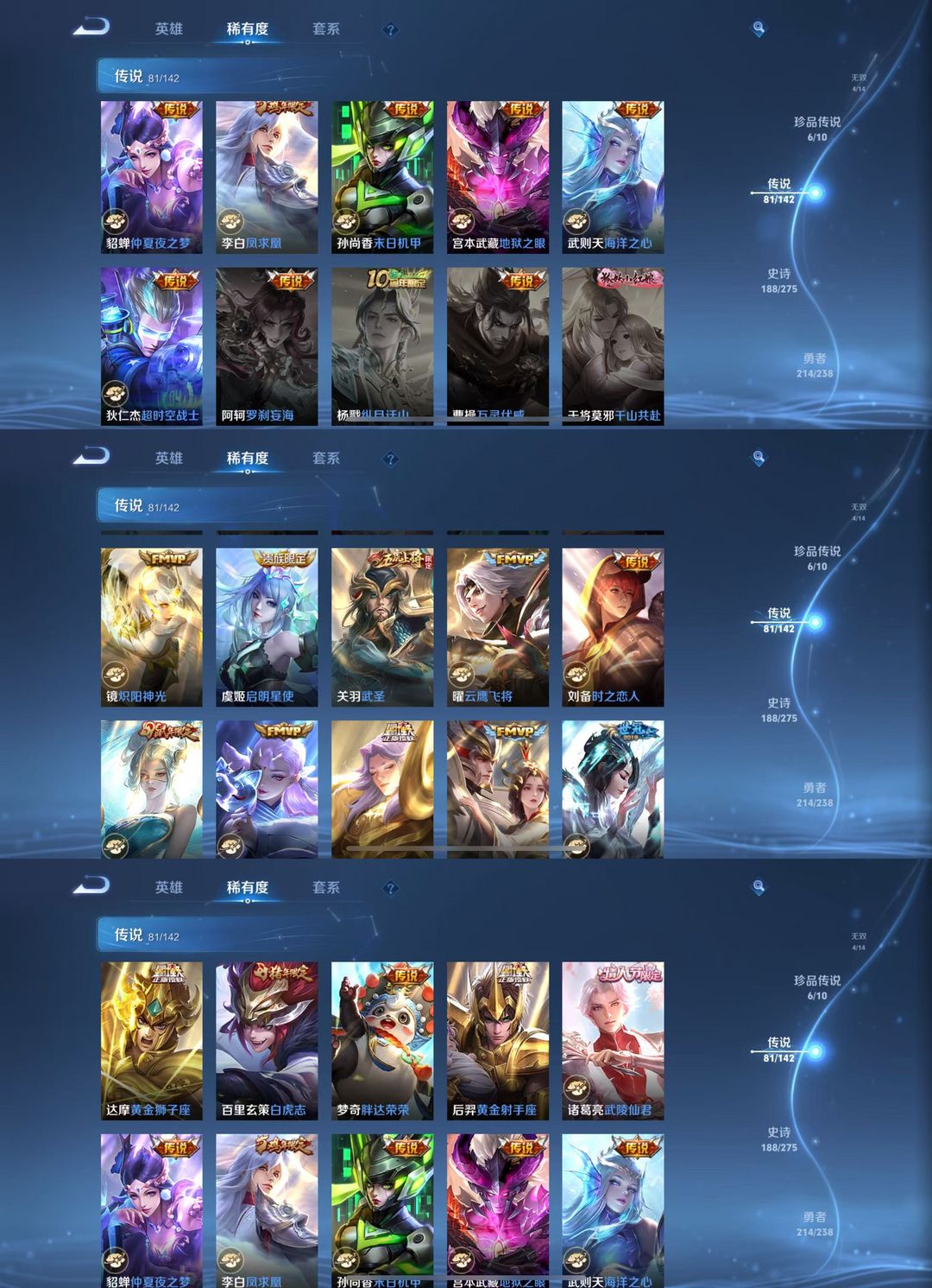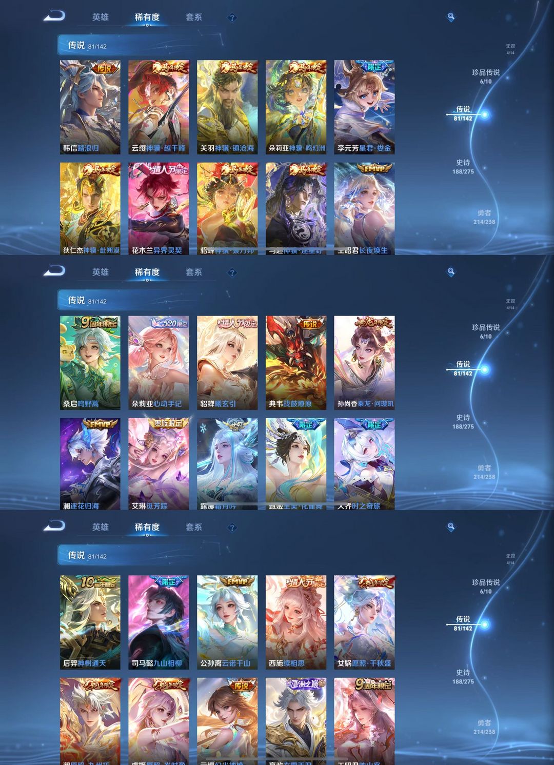 贵10【581皮】8典藏⭐四无双⭐六珍品传说⭐81传说皮