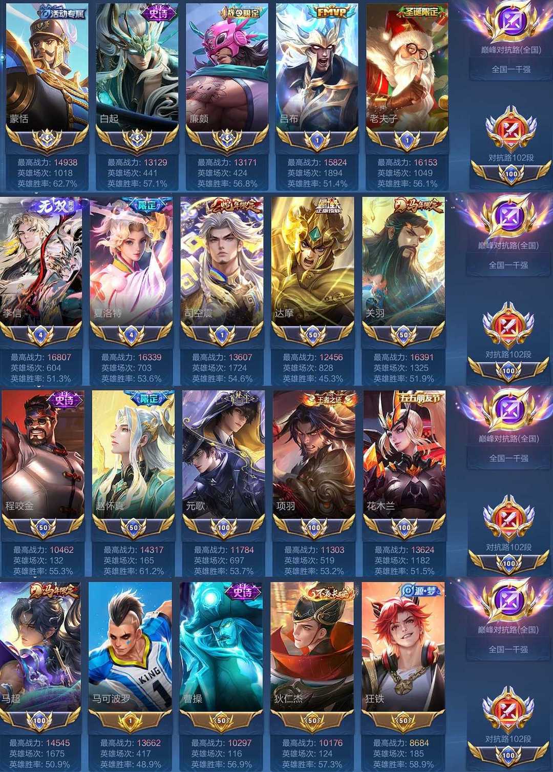 (禁玩巅峰赛)本周达摩小国标在榜+对抗分路千强,本周马超,关羽,达摩,老夫子,程咬金