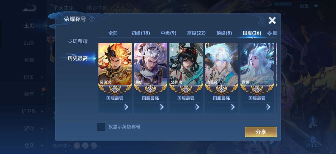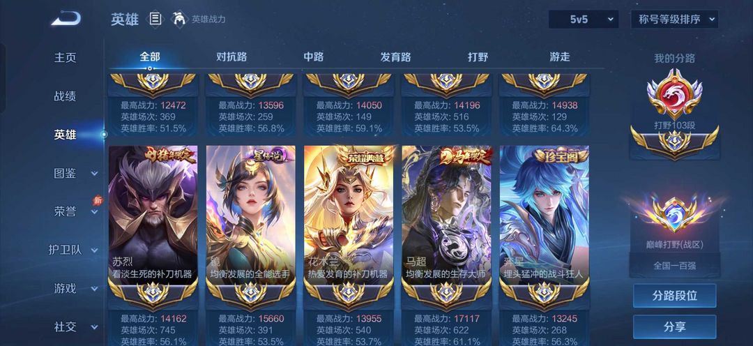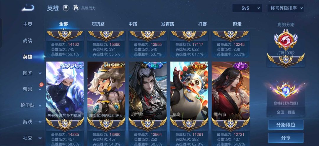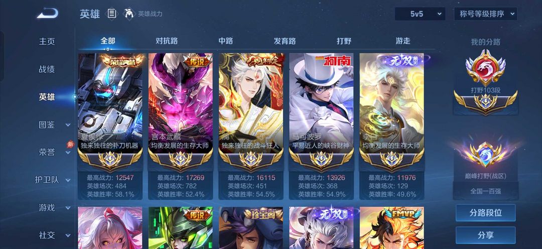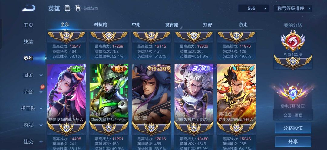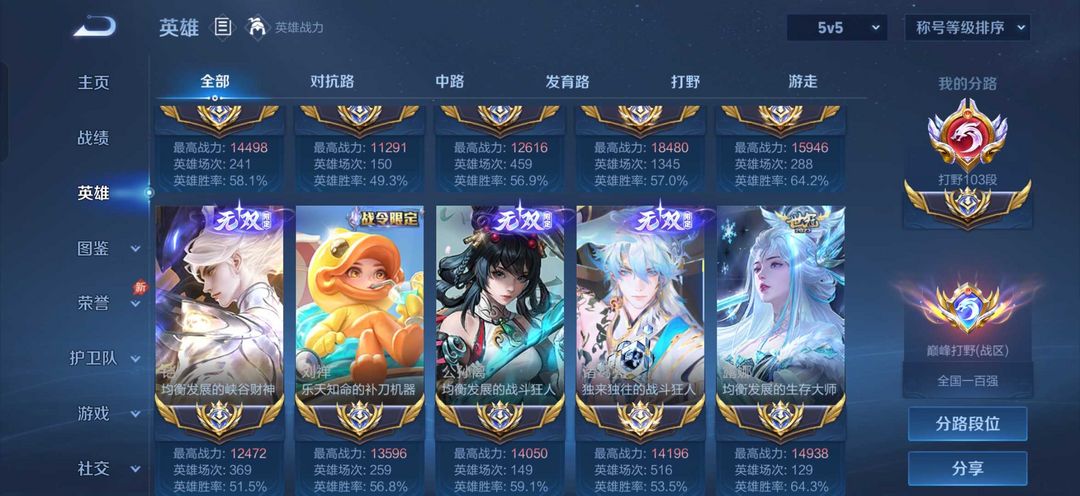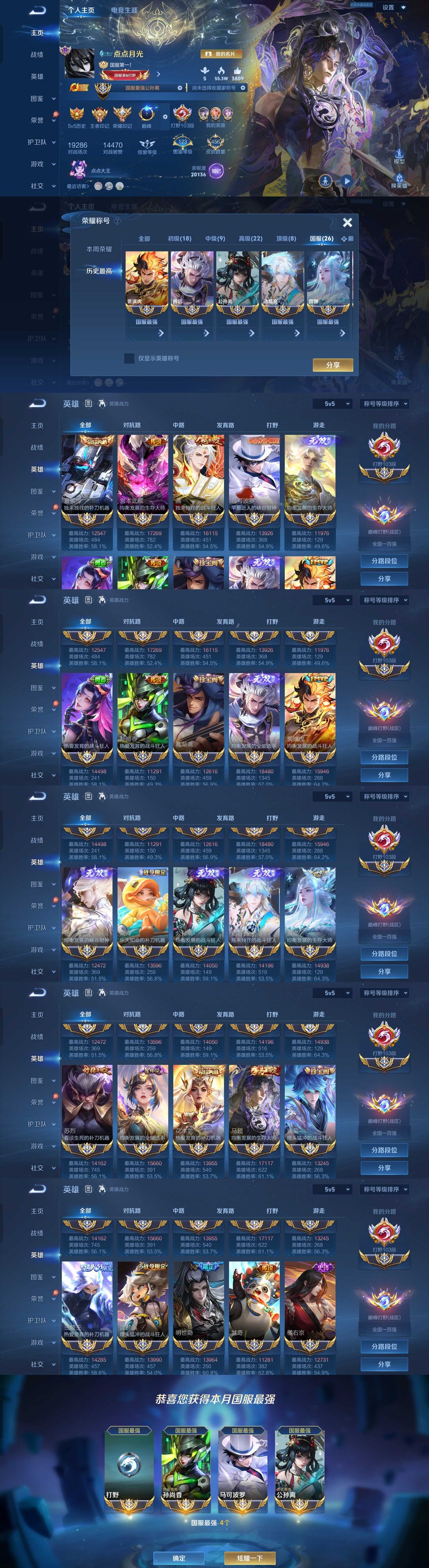 (账号高危只能无限乱斗)4月在榜4国服公孙离马可孙尚香❤️103段国服第六打野❤️历史热门26大国标